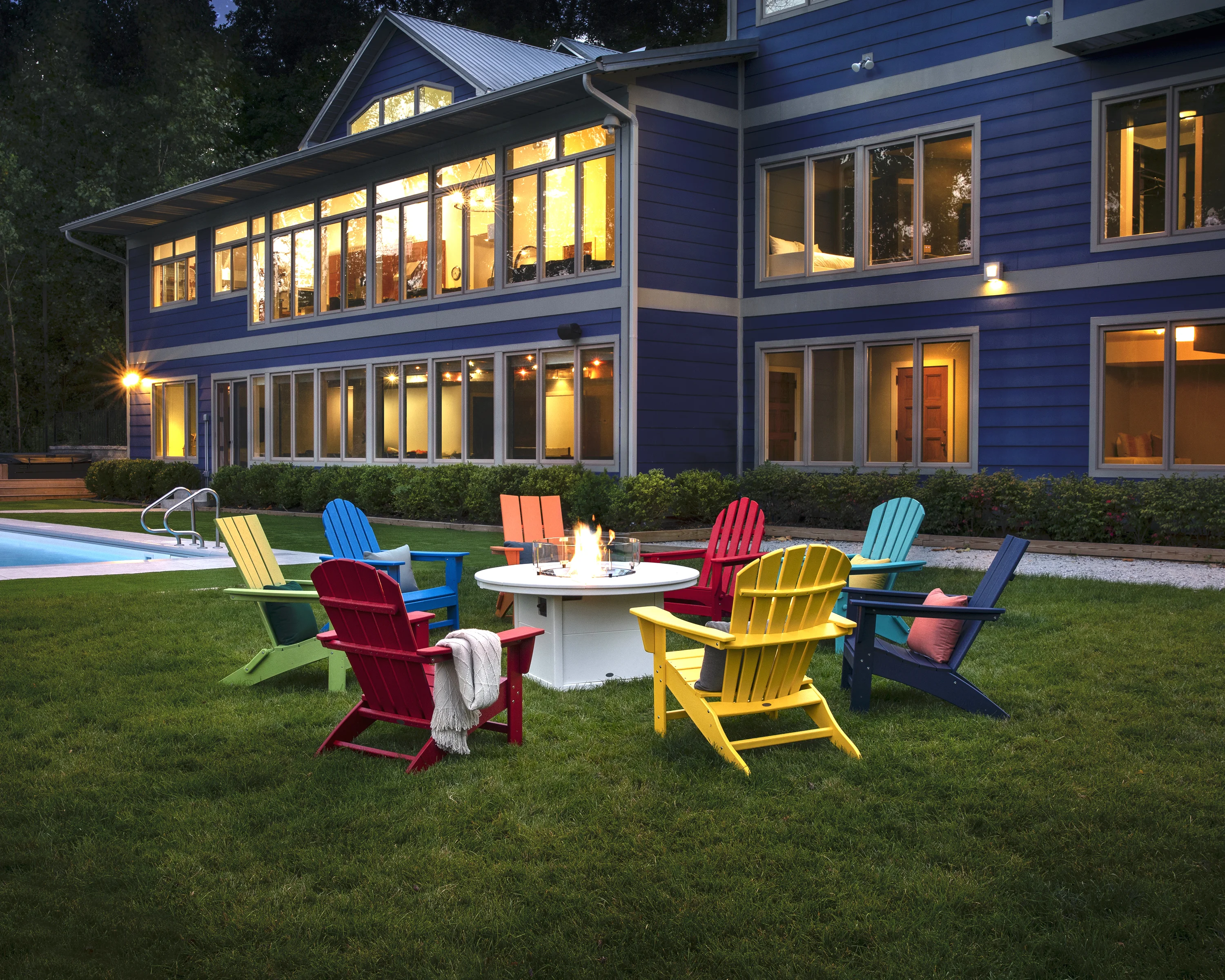 Tidlös och hopfällbar Adriondack-stol i väderbeständigt material med lång hållbarhet och enkel skötsel.