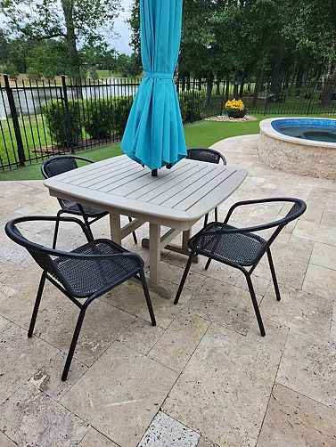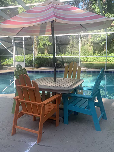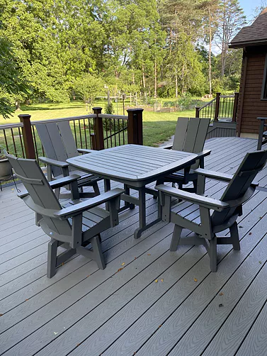 - Kan användas av fyra personer med de flesta stolar i matbords standardhöjd, alla Polywood matstolar passar perfekt under bordet