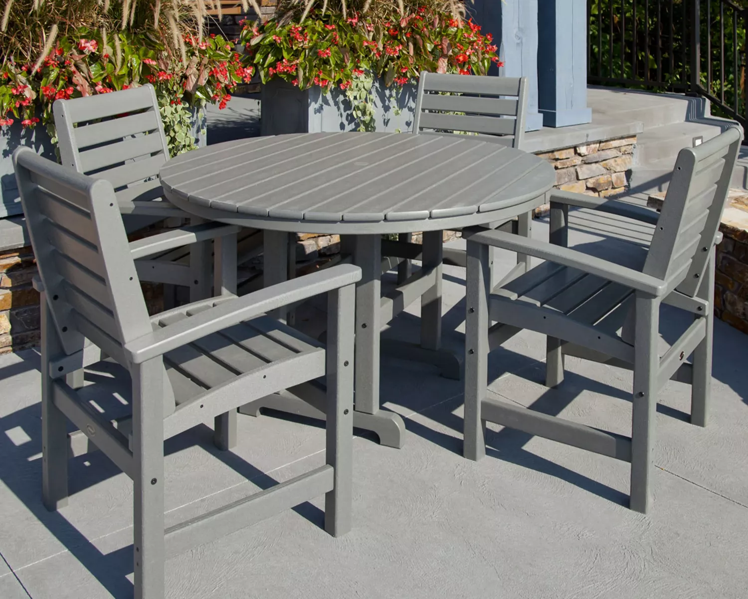 - Kan användas av fyra personer med de flesta stolar i matbordsstandard höjd, alla Polywood matstolar passar perfekt till bordet